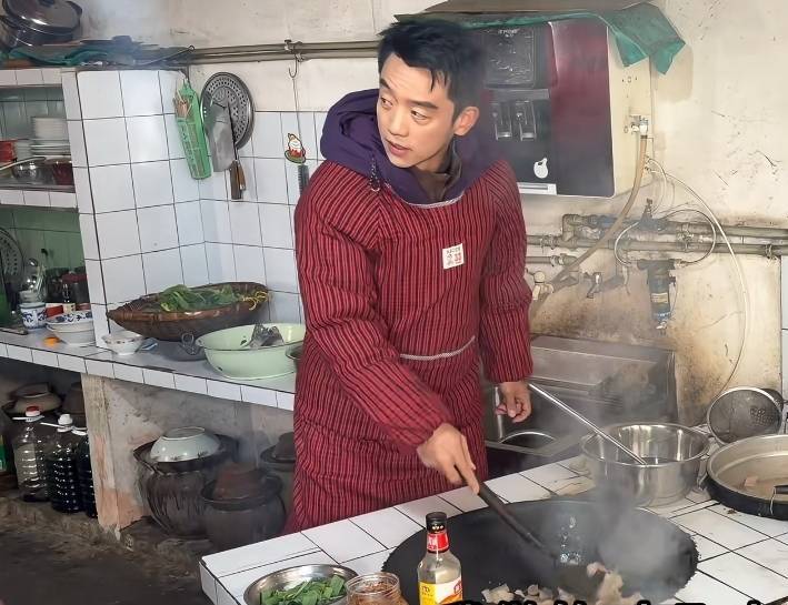 刚到地方的郑恺就被拉去干活,先是穿上了一件“四川省服”大红围兜,果然是人帅穿什么都好看,郑恺虽39岁了,但看着还像个年轻小伙一样,“小猎豹”的帅气还是不减当年,穿着这围兜不仅不违和,反而有种别样的可爱。