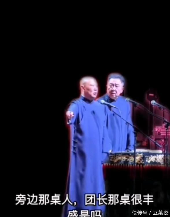 上来,团员吃草 郭德纲说:慰问时候,吃的好, 于谦:那可不呗, 郭德纲说:慰问有好饭 于谦:但有时候也不行是吗? 郭德纲:团长他们吃的还好一点,我们这演员就差点演员吃的,我们九菜一汤,你说吃得饱吗? 于谦:那您什么饭?九个菜一个汤还吃不饱啊 郭德纲:炒一盘韭菜来个汤 观众:哈哈哈, 于谦:哦,九菜一汤啊,炒一盘韭菜来个汤,那玩不了,净吃草了。