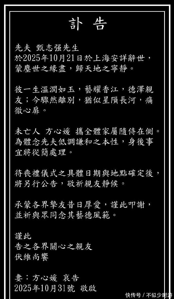 而在他之前七天辞世的甄志强,年岁,正值壮年骤然离去,更令人心头压抑难平。