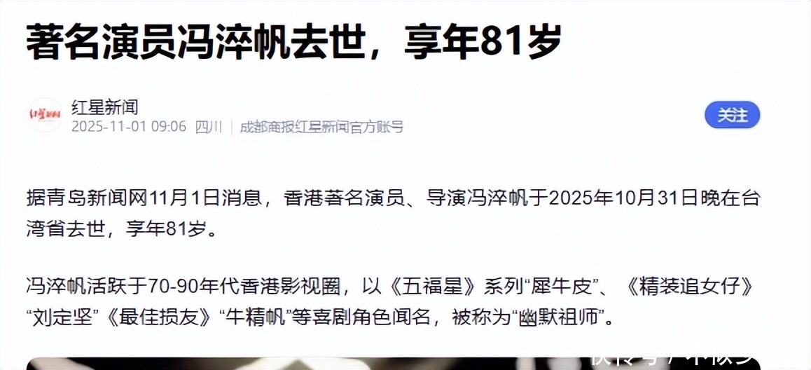 11日,享岁的冯淬帆悄然离世。此前他在许绍雄病逝后曾发文透露自己健康状况堪忧,当时许多人以为只是情绪低落,未曾料到那竟是真实写照。